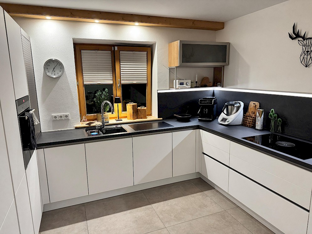 Küche weiss HGL schwarz Eiche bianco Miesbach